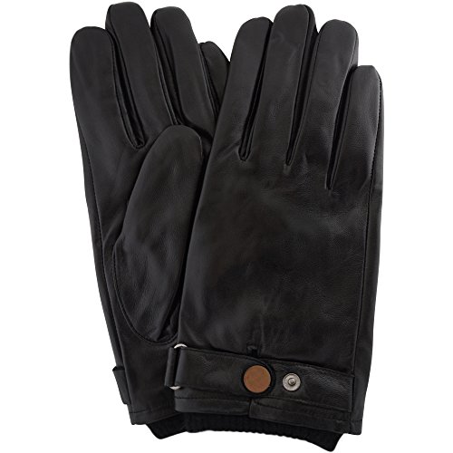 Best Seller! Mens Premium Soft Leather Glove with Elasticated Wrist, Strap & Stud Feature and Warm Fleece Lining (Black - Large - 9.5") Review